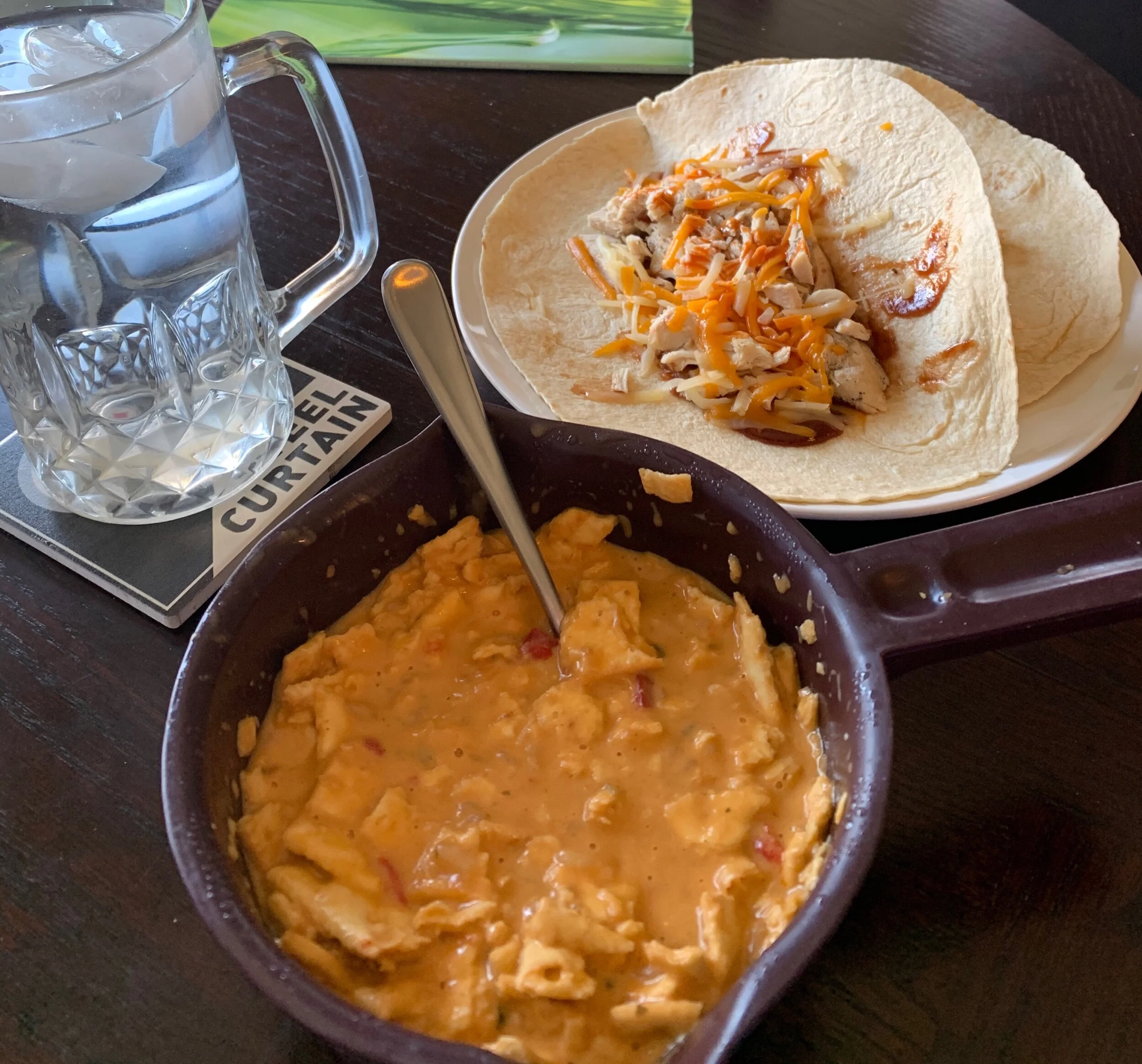 I thought I’d share another one with. This is just a regular lunch. I have had some issue getting soup in these trying times but every time my favourite kind is there waiting for me. It’s from Campbell’s, Creamy Thai Chicken. It’s got spice, chunks of real chicken and is quite hearty. I also like to dip crusty bread in it. I very much enjoy that it’s usually there for me on the store shelf. To accompany my soup I like to crush 10-15 salted top crackers into it. Some people call them saltines, but who am I to judge. For the samidge component of the meal I opted to pull apart some chicken breasts and toss them in some shredded cheese before wrapping the gooey mess up in a wrap with some various sauces. It was one of the better renditions of a sandwich component that I’ve had a go at for such a regular lunch. One thing this global shutdown is getting me back to the kitchen.