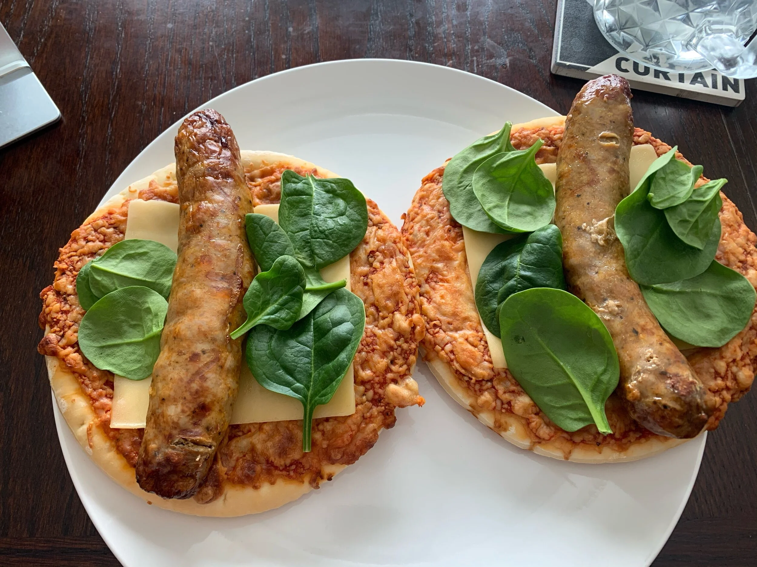 I wanted to be able to add something about a torrid finish to the title but as you’ll see in this short one, it won’t be the case. I came alive somewhere between eight and nine. I dozed in and out for most of the hour so I can’t tell you specifically that I got up. I did use the bathroom a couple times but otherwise I didn’t really get up per se. I watched YouTube in my bed, not even sure what. I was a daze. I think it was the terrible night that wrecked my morning. I didn’t even bother setting any goals today. Around half noon I showered, it sort of knocked me down a peg and I had to lie down. I’m not sure what was the matter but decided that I need to get some water into me and have some food. I wandered down to the kitchen and spent a long time gazing into the fridge. I decided at once that I’d use the last two bacon and cheddar sausages as the focal point of the dish but I wasn’t certain on what I’d do with them. I have been buying more fancy cheese these past months after getting berated by Sassy Girl for my love of Kraft Singles. I had a package of smoked gouda slices and one of monterey jack. I picked the smoked gouda and rather than using a wrap, which felt excessive for an intact sausage (since I didn’t feel like cutting these up), I opted for a type of bun. In this case, it was a pizze bun. I threw some spinach in there because I need to use it up and also eat more greens and voila. It was great, very flavourful. I should apologize for the cross section photo, but I won’t. I feel it is important to show how it sort of melted together.